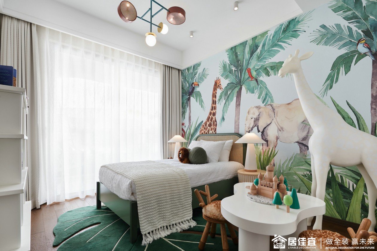 孩童对于自然的想象与好奇是无止境的,儿童房以“森林动物”为主题,通过深与浅的对比色调,拉伸层次的同时,也凸显生动与活泼之感,在有限的环境内迸发出无限可能。