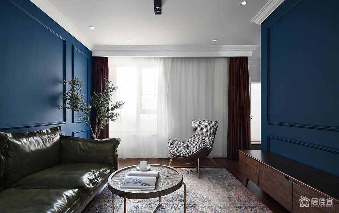 减轻传统复古风格所带来的繁缛厚重感,结合现代元素,没有多余的装饰,空间干净利落却柔和。房间的天花与墙面采用了PU线条装饰,色彩的差异与线条的交替使得空间更有层次感。黛绿色羽绒皮布沙发,柔软舒适;搭配实木柜类家具,美观大气,层次分明;黄铜老杉木茶几,点缀质感;波西米亚地毯,独具风情,利用不同的元素让整个空间变得十分丰富,营造时尚复古且充满韵味的家居空间。