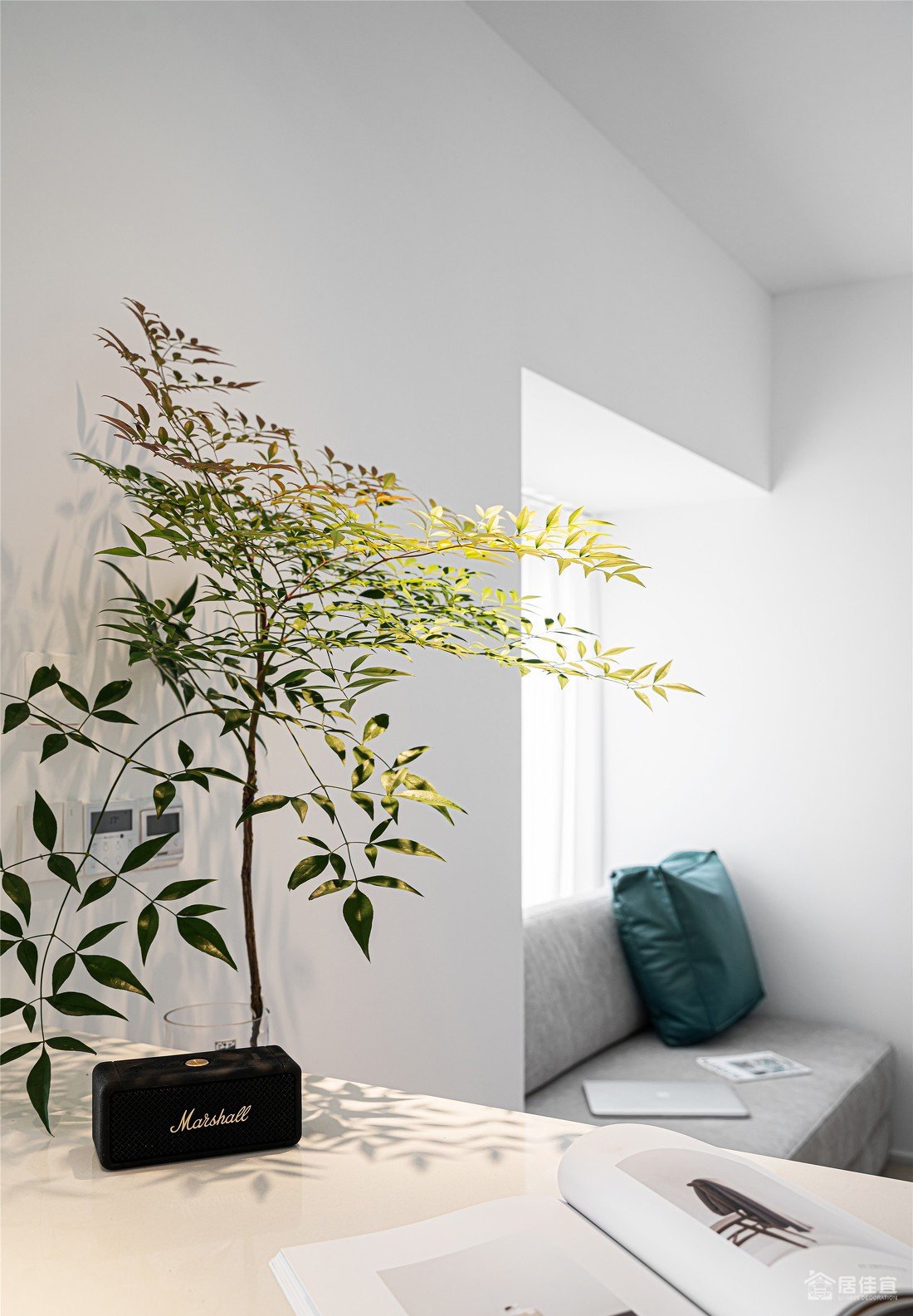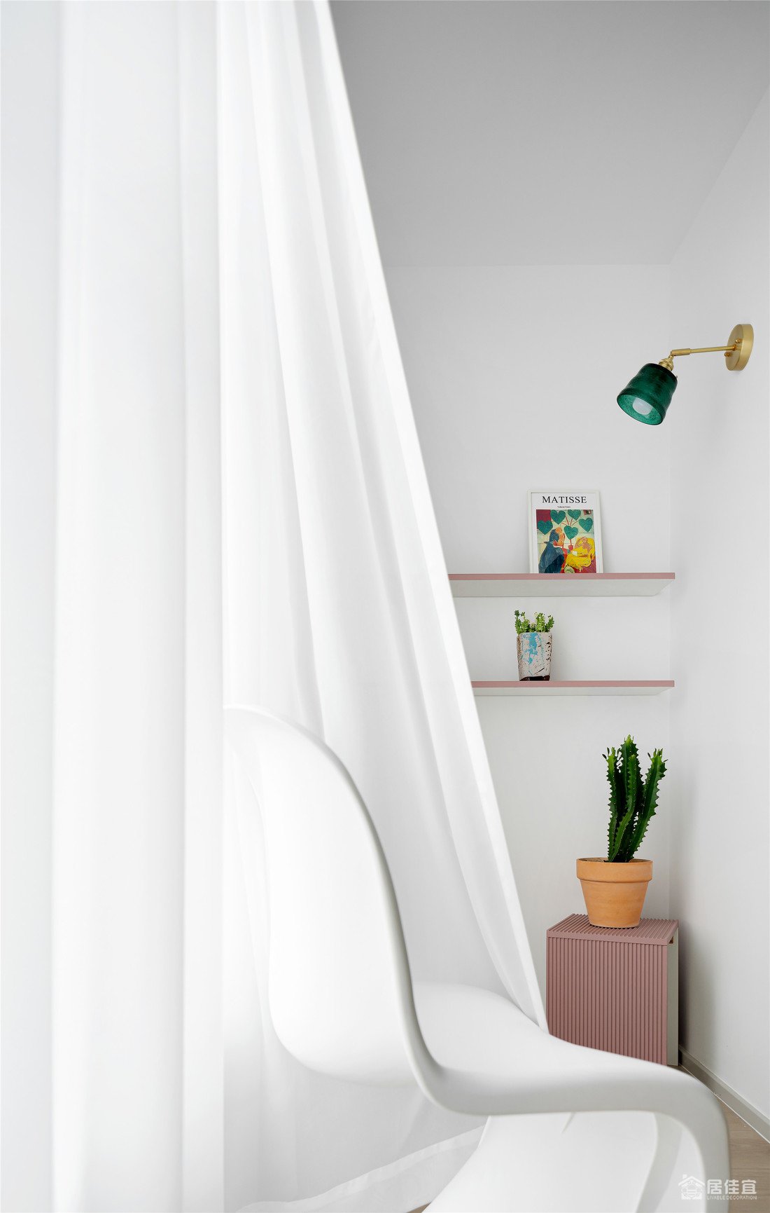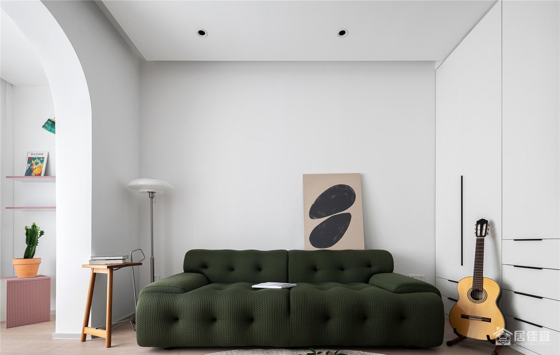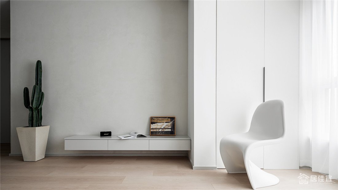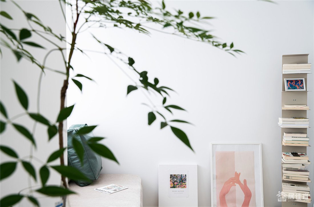 这个角度干净到治愈,小画后面是备用的插座,利用承重墙做了收纳柜,让空间规整少犄角,多了收纳。