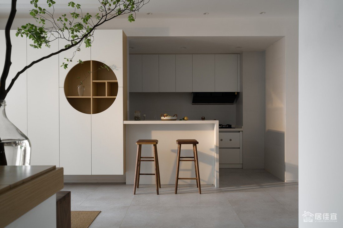 夜幕降临,灯光照在素白的墙面,暖得溢出了幸福。阅读累时,在吧台喝一杯咖啡,寻找一份灵感。或是黄昏时分,两人小酌一杯,让美好成为日常。三五好友,周末小约。厨房不再是影单影只的忙碌背影,更多了人与人之间的互动。