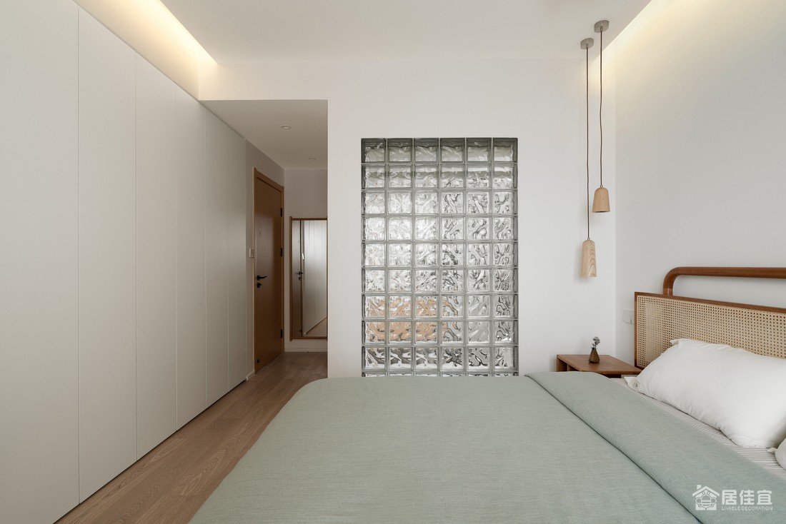 你若细看便会察觉,空间的收纳被藏得很隐秘。以至于女主当时没发现自家的衣柜在哪里。床尾的墙面、飘窗的地台和两侧,都将平日的衣服和杂物存放到不经意的地方。以释放最整洁宁静的睡眠空间。