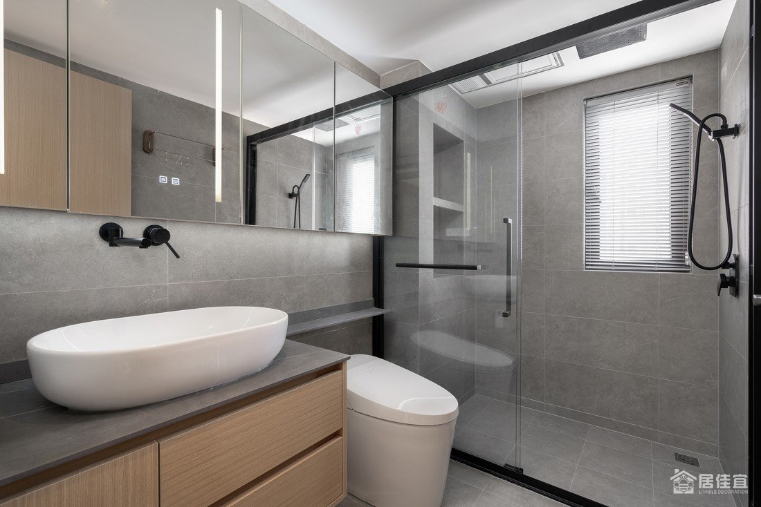 客卫,主要是男主使用。淋浴房的嵌入式顶喷,为劳累的一天下一场酣畅淋漓的热雨。