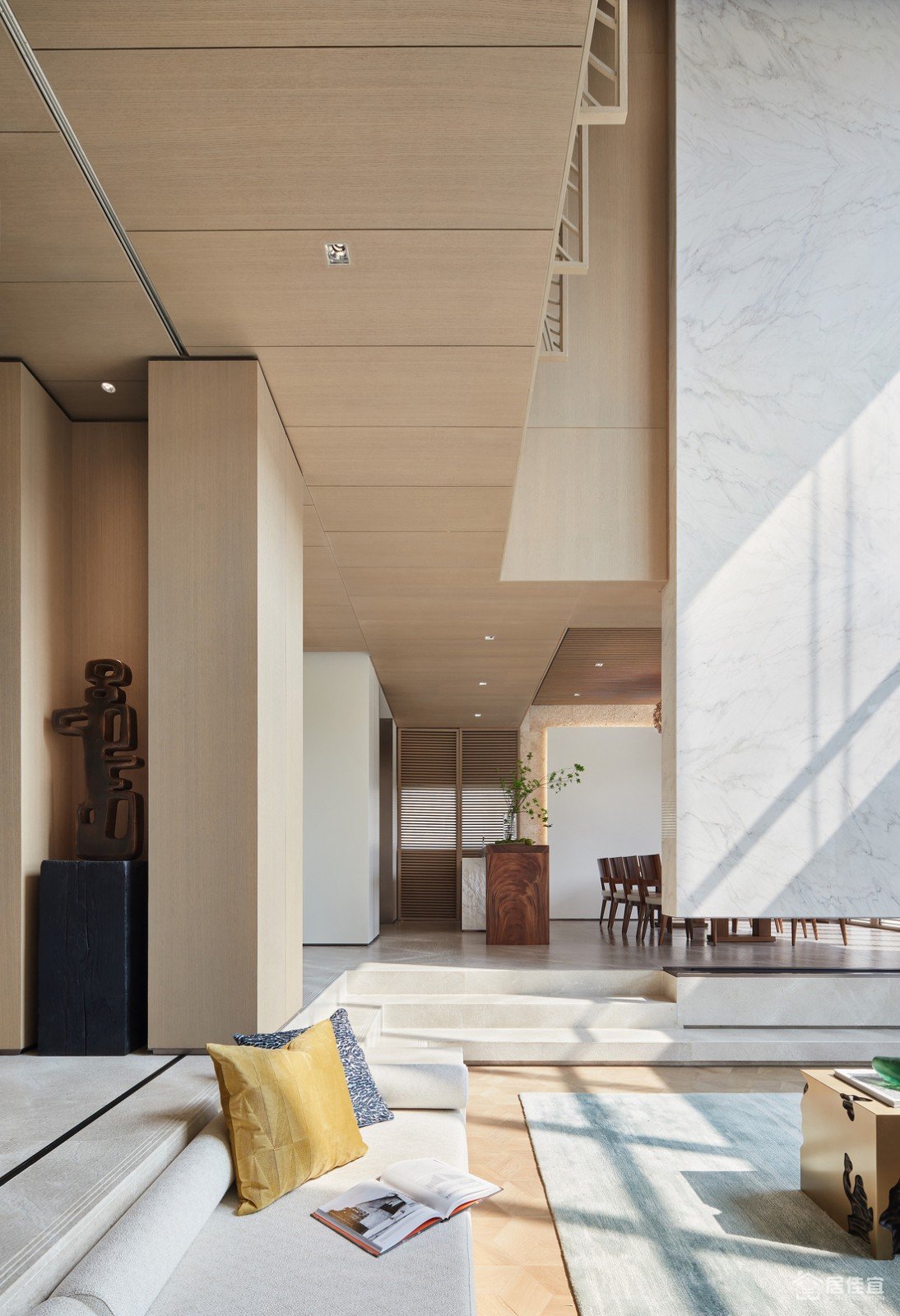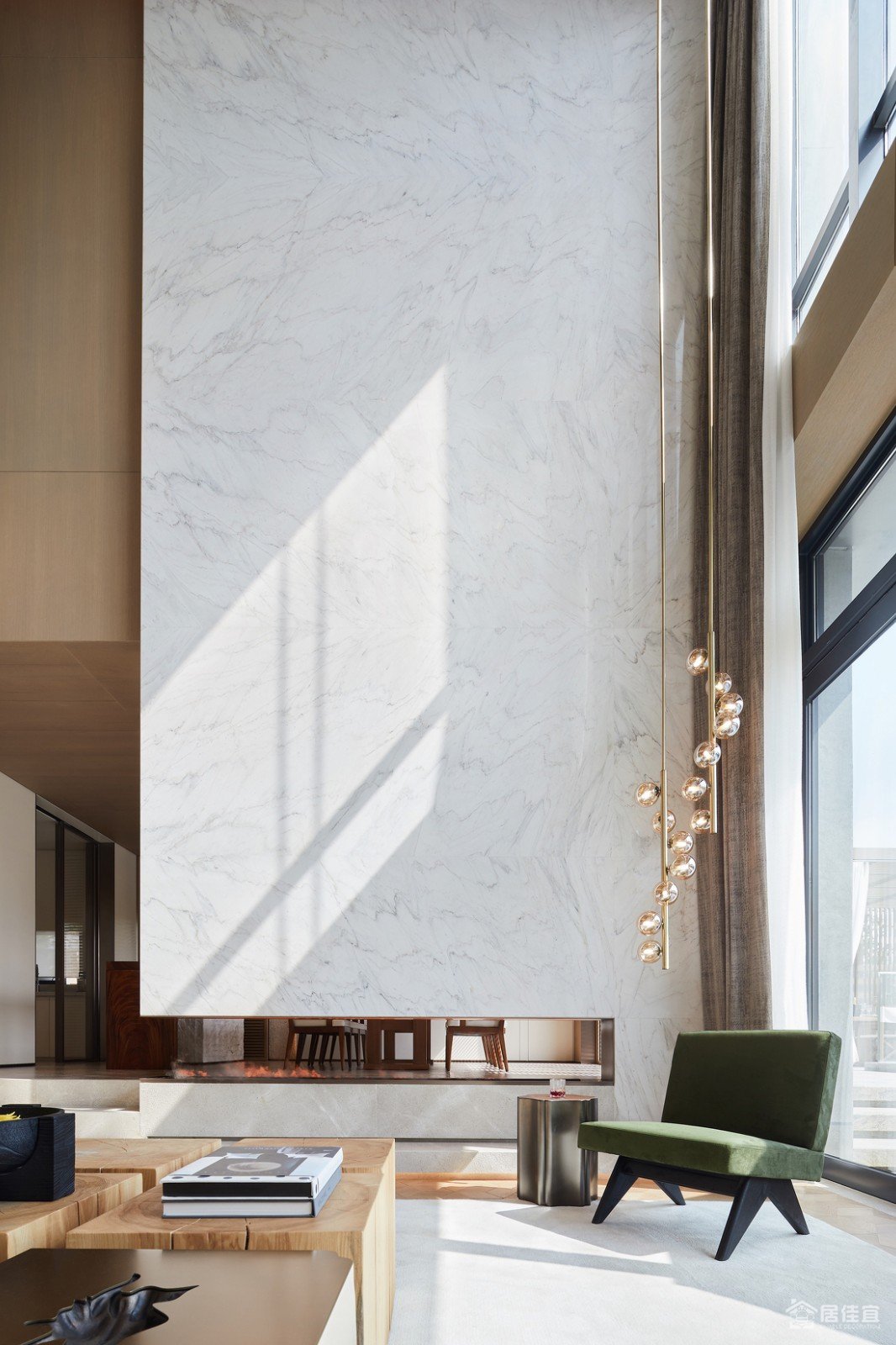 设计团队怀揣着「比例之外,没有美学;生活之外,没有设计」的理念,以当代人文的国际视野,以山海缩影与天光云影为背景,思考人、空间、宇宙相互依存的艺术语言,试图构筑一处拥有自然人文气息的居所,探索东方哲思启迪下材料和光影演绎的宜居实践。