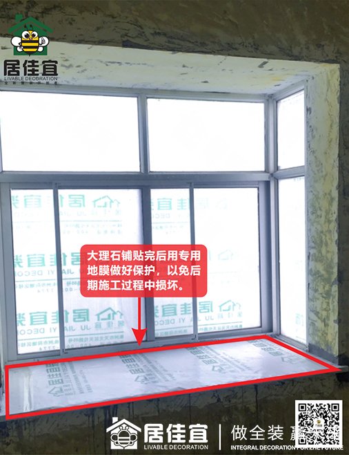 大理石铺贴完后用专用地膜做好保护,以免在 后期施工过程中损坏。
